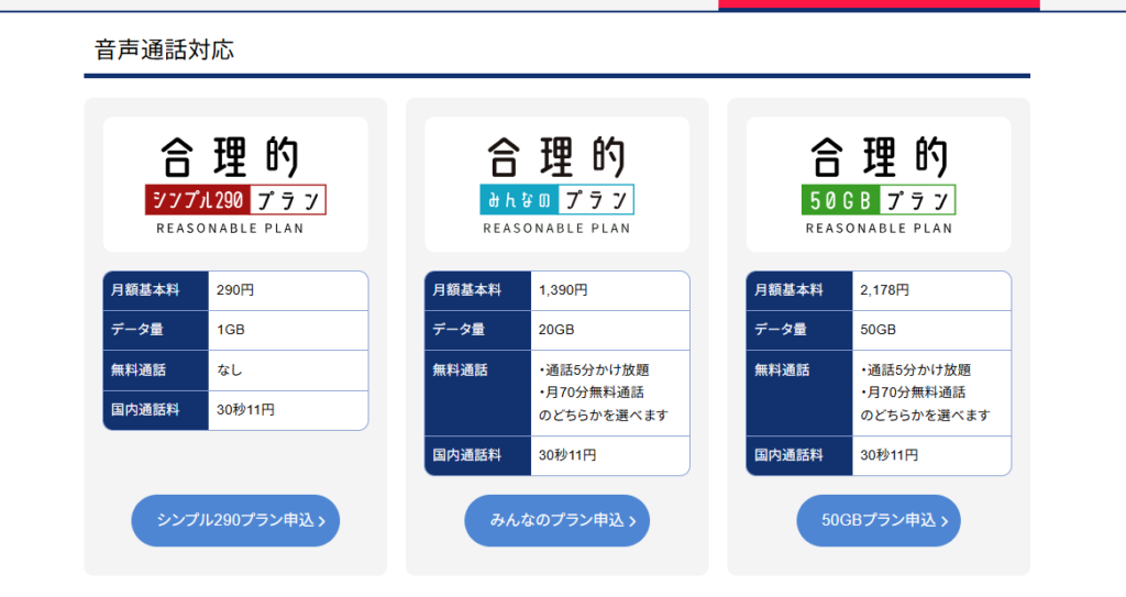 ちなみに、通話自体が必要ない方にはもっと安いプランがあります!