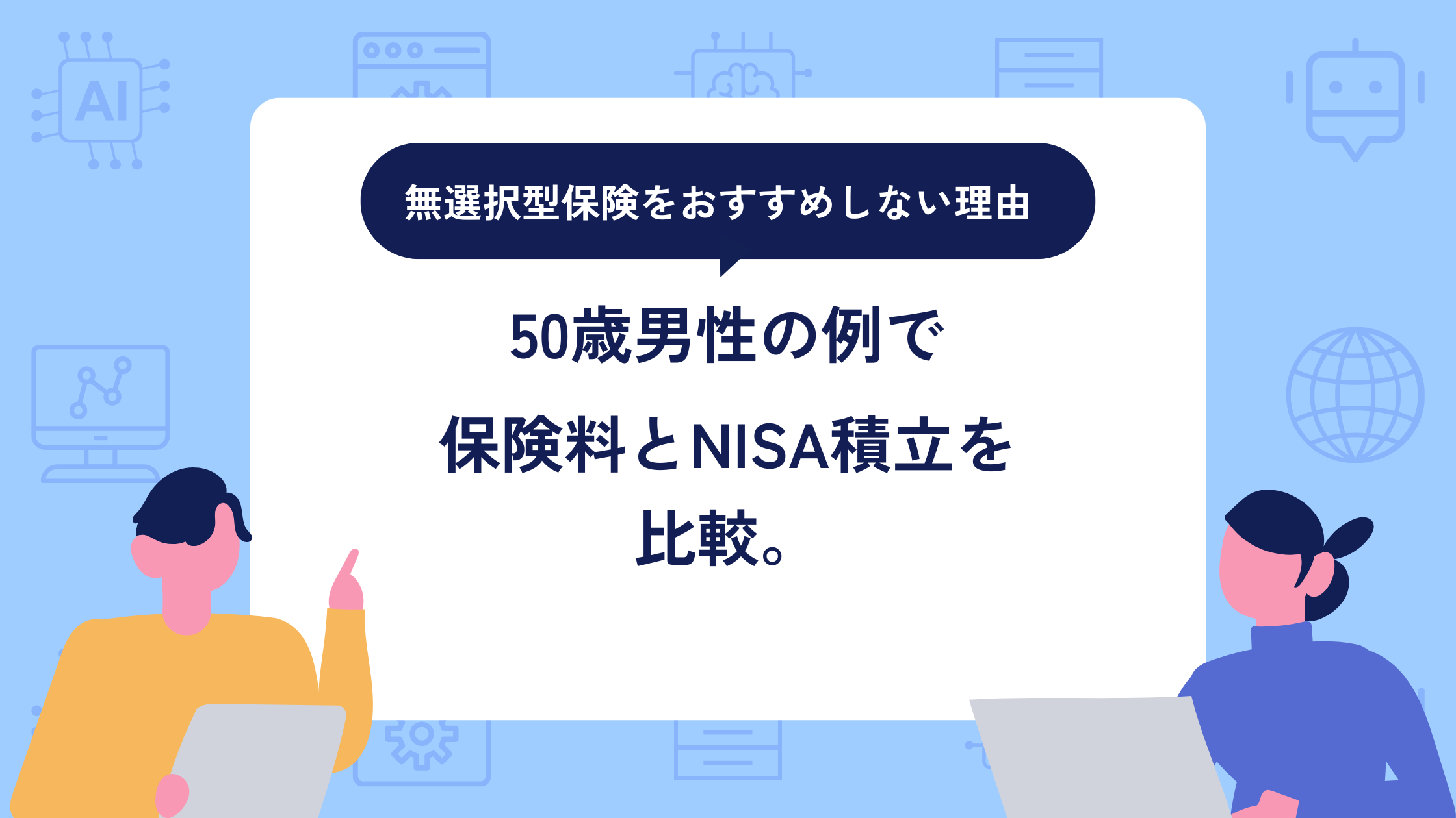 今回は、50歳男性の具体例を使って、無選択型保険のメリット・デメリットと、NISAで積み立てた場合との違いをわかりやすく整理します。